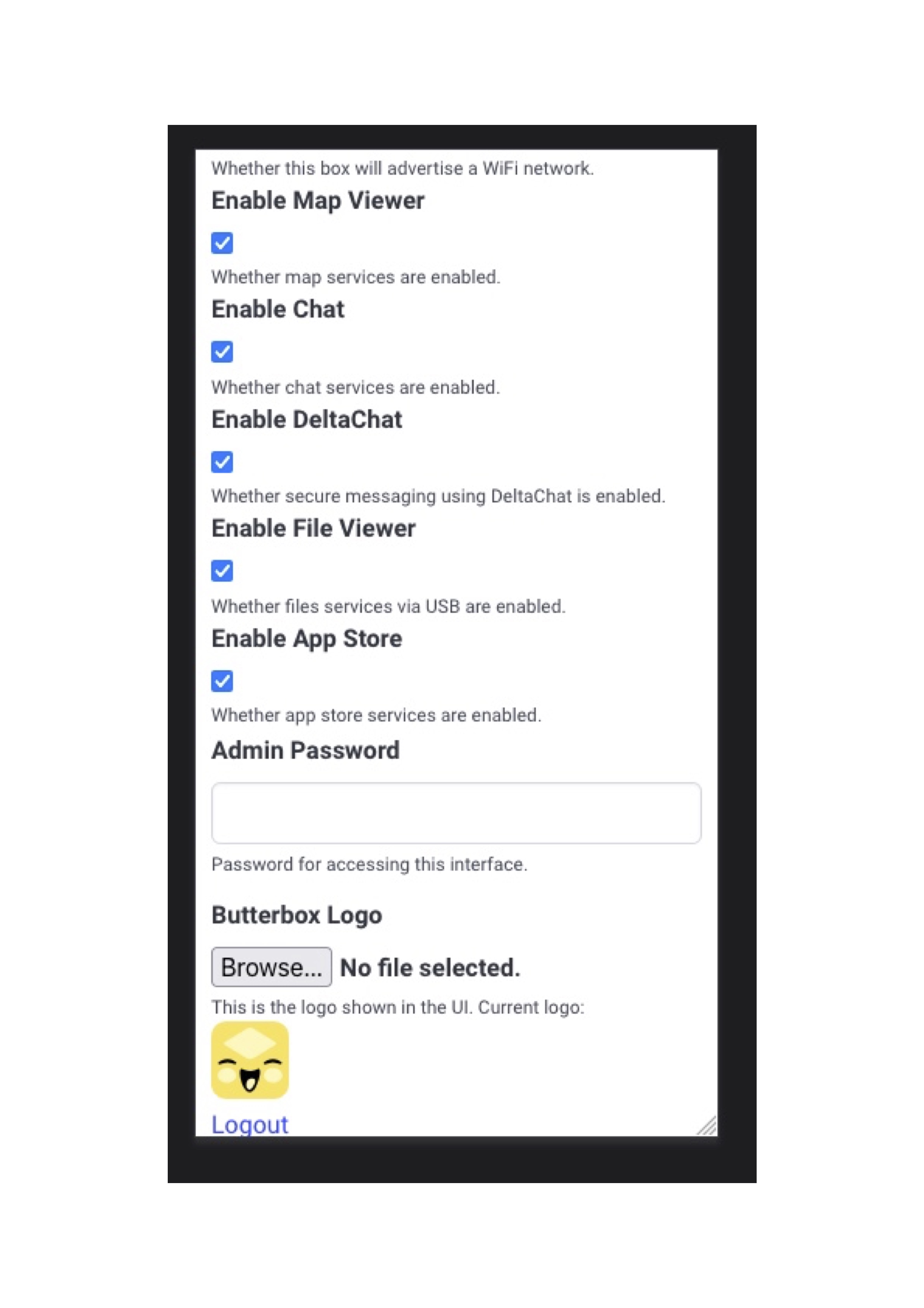 Development of the butterbox UI website and configuration portal